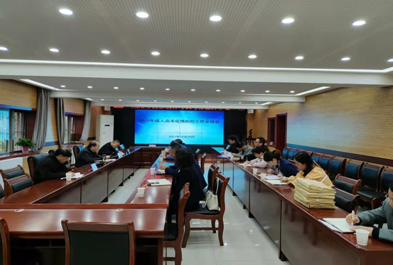 会议传达了近期省、市疫情防控工作会议精神,学习了省教育考试院《关于做好2021年成人高校招生全国统一考试疫情防控工作的通知》精神,并对成人高考疫情防控工作进行了安排部署。