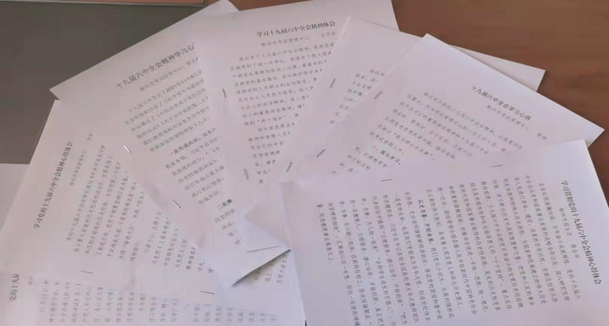 会后,大家纷纷撰写了自己的心得体会,并表示要更加紧密地团结在以习近平同志为核心的党中央周围,从党的百年奋斗史中汲取智慧和力量,坚定教育初心,牢记育人使命,全力做好考试管理和服务工作。