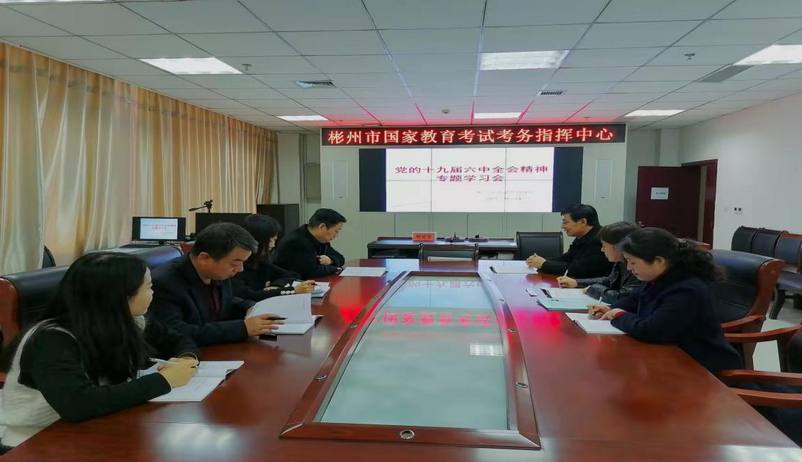 11月24日,彬州市考试管理中心召开党的十九届六中全会精神专题学习会。主管党务的副主任进行了六中全会精神宣讲,与会同志认真聆听,用心记写笔记,深刻领会了习近平总书记在十九届六中全会上的重要讲话精神实质。