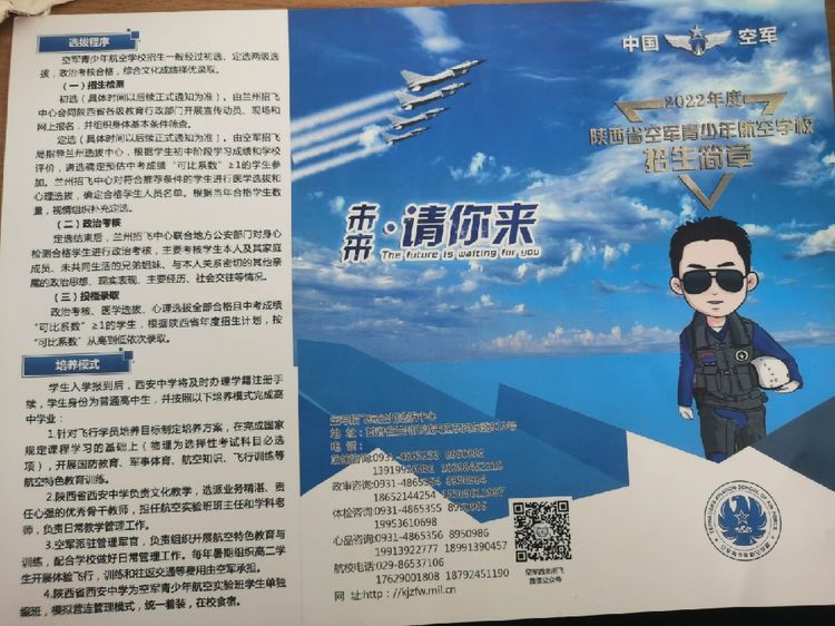 近年来,武功县教育局高度重视空军青少年招飞工作,由招生办牵头,多次深入学校,要求各初中校心怀祖国大局,重视空军青少年招飞动员和培养工作。一是做好空军招飞宣传工作。组织热爱祖国、政治可靠、思想进步、品德优良、遵纪守法、作风正派且对飞行有较强兴趣和愿望的初三同学,观看空军招生宣传短片,听取空军招飞局工作人员作的激情飞扬的宣传报告,增强他们对祖国蓝天的热爱之情。二是重视学生身体素质的锻炼和加强。利用平时的体育课、大课间活动,开展丰富多彩的体育锻炼,既丰富学生课余生活,也增加学生身体素质,以适应空军招飞对身体素质的要求。三是做好空军招飞培养工作。初选结束后,要求各校制定详细的保苗工作计划,针对学生实际,做好初选学生在学习、思想、生活等各方面的保障和关心工作,确保最终招飞工作的通过几率。