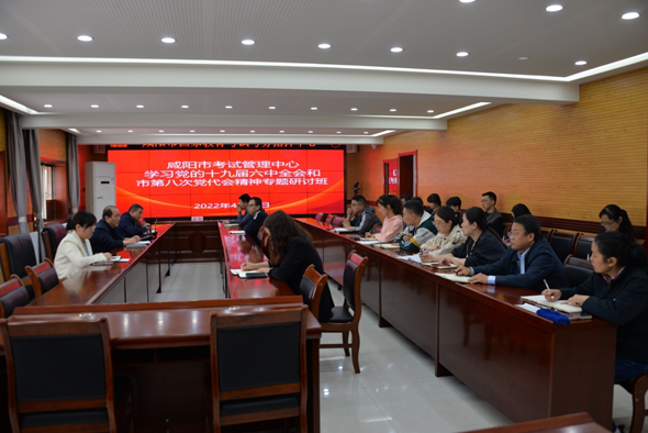 4月21日上午,咸阳市考试管理中心举行学习贯彻党的十九届六中全会和市第八次党代会精神专题研讨班开班仪式,正式启动为期3天的专题研讨活动。