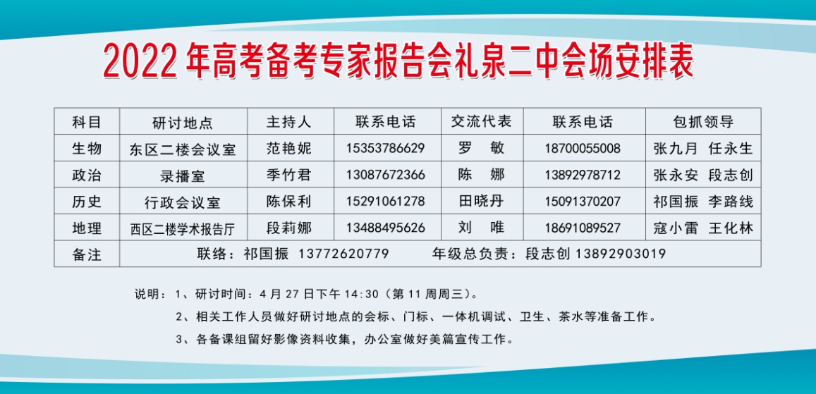咸阳市礼泉县2022年高考备考报告会二中会场安排