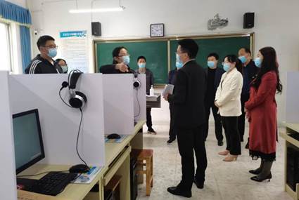 5月13日,咸阳市考试管理中心乔晓英副主任和招生科王天宇科长等一行到乾县检查指导2022年普通高校招生外语口语考试工作,对乾县的考试准备工作给予充分肯定。乾县县政府教育副总督学刘小龙一同检查。