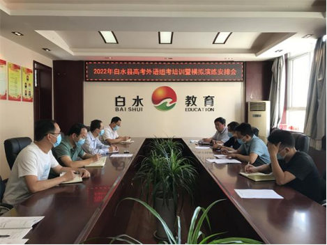 5月30日,白水县召开2022年高考外语组考培训及听力模拟演练安排会。各高中主管领导,各考点主考、副主考及教育考试中心工作人员参加会议。