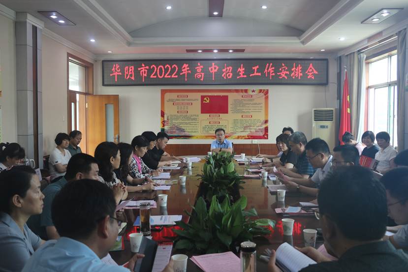 7月14日上午,华阴市在教科局四楼会议室召开会议,安排部署今年高中招生工作。华阴市教科局主管领导,考试中心、教育股负责人,督导室、纪检监察组负责人,各初中、普通高中、职教中心校长等30余人参加会议。华阴市教育科技局党委书记、局长吴永涛出席会议。