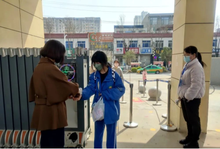 3月25日早上7点10分,三中考点的工作人员早已各司其职,严阵以待,等待考生们的到来。校门口设立了入校通道,学生在工作人员的指导下,依次进行身份验证。
