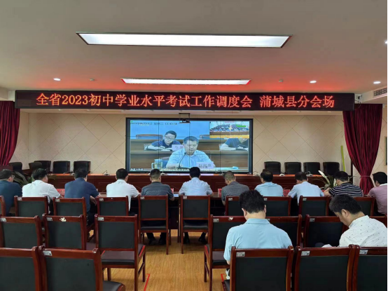 2023年6月13日下午,省教育厅组织召开了全省2023年初中学业水平考试工作视频调度会。渭南市蒲城县教育局、教育考试中心、教研室有关领导、各考点主考在教育局四楼视频会议室参加了会议。