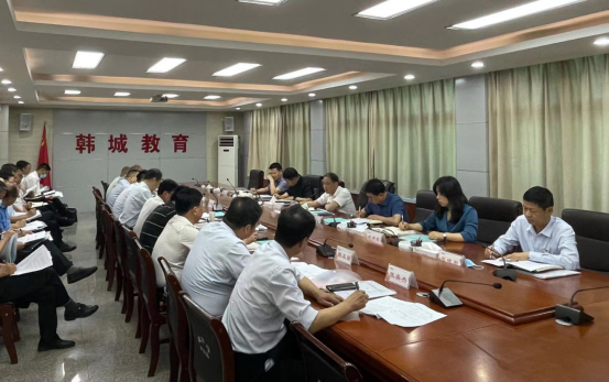 6月14日,渭南韩城市教育局召开2023年初中学业水平考试考务工作会,安排中考考务工作,强调考风考纪。市教育局党组书记、局长郑武军出席会议并讲话。市教育局班子成员、相关科室和直属单位负责人、各考点主考、副主考、考务组长及各初中学校校长参加会议。