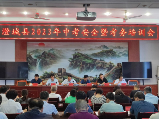 6月14日,渭南市澄城县召开2023年初中学业水平考试安全暨考务培训会。各考点主考、副主考、组考工作人员,各高中、初中(九年制学校)校长、县级检查、保密、平台工作人员,局班子成员参会。会议由局党委副书记、副局长马小江主持。