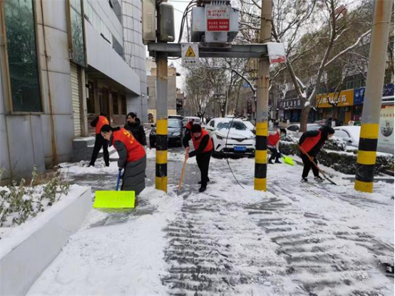 雪落无声,大爱有言。在清扫落雪过程中,全体党员干部主动作为,不畏寒冷,密切配合,劲头十足。铁锹与地面时而发出清脆的“啪啪”撞击声,扫帚扫雪时发出“沙沙”的摩擦声,大雪飘飘打在衣服上的“哗哗”声相互夹杂在一起,奏响了一首新时期教育考试工作者的扫雪进行曲,为眼下这个风吹雪盖的县城增加了一道道靓丽的风景线。
