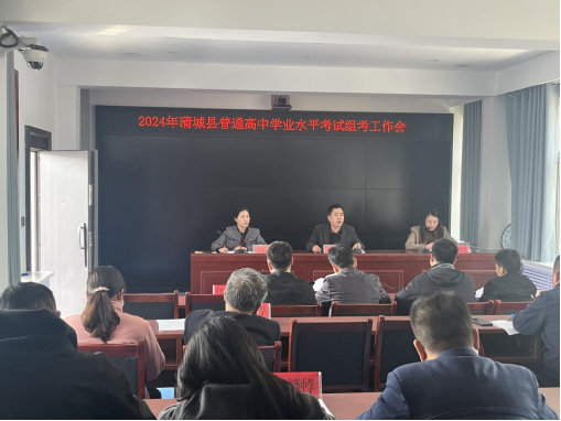 会议学习了《蒲城县教育局关于成立2024年普通高中学业水平考试组织机构和监考工作人员安排的通知》《蒲城县教育考试中心关于印发2024年普通高中学业水平考试实施细则的通知》,从组织机构、考试科目及时间、考点设置、组考要求、考务培训、考生教育、考试安全等方面对今年蒲城县普通高中学业水平考试组考工作进行了细致安排与部署,重点强调了考试安全工作。