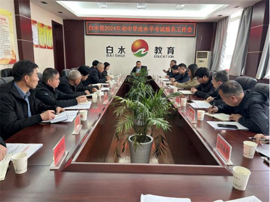 为确保2024年初中学业水平考试报名工作顺利进行,渭南市白水县成立初中学业水平考试报名工作领导小组,加强考生资格审查和报名工作,加大政策宣传力度,确保考生知晓各项报名政策和规定,扛紧扛牢工作责任,落实落细工作举措。并于3月26日召开2024年初中学业水平考试报名工作专题会议。各初中校长,局相关领导及股室参加会议。会议由教育局基础教育股股长周天军主持。