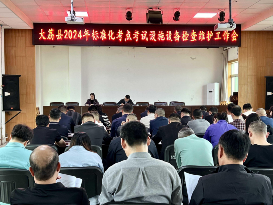 4月9日,渭南市大荔县招生办组织召开了2024年国家教育考试标准化考点设施设备自查工作会议,各考点设备组长、设备副组长,视频监控系统、信号屏蔽系统、身份认证系统、听力播放系统、校园广播系统、校园电路系统、司铃系统、安检门、校园设施等19项设施设备负责领导及负责人参加了会议。