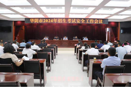 5月20日下午,渭南市华阴市在政务中心召开2024年全市招生考试安全工作会议,全面动员、安排今年高考、中考工作。华阴市考区主任、副市长曹鹏,考区副主任、教科局局长吴永涛,招委会各成员单位主管领导,教科局招生考试工作主管领导、部分领导班子成员,各考点主考、副主考,涉考学校、生源学校校长等40余人参加会议。
