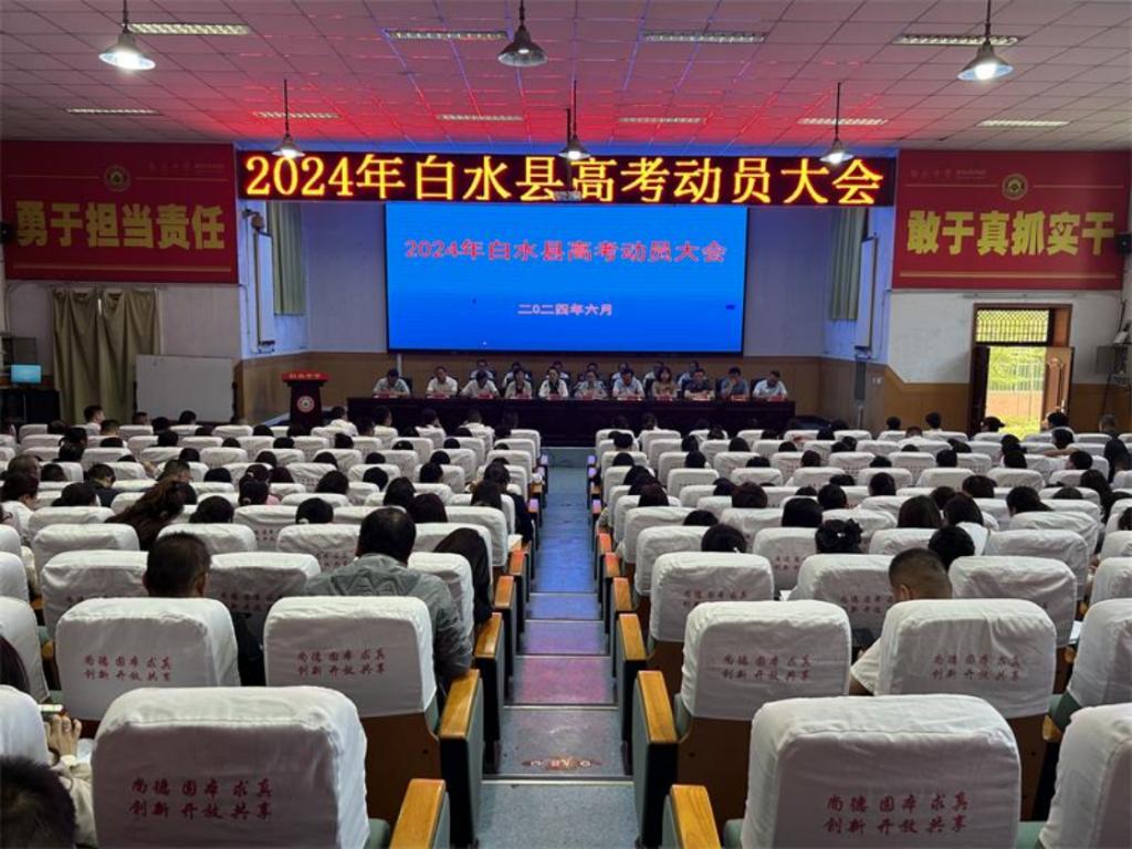 6月6日,渭南市白水考区在白水中学报告大厅隆重召开2024年高考考前动员大会。市督查组孙青雅组长、沈文婷副组长,白水县政府副县长、招委会主任刘亚平,白水县教育局班子成员、考区所有组考人员及招委会相关成员单位200余人参加了会议。会议由教育局党组成员、教研室主任王永辉主持。