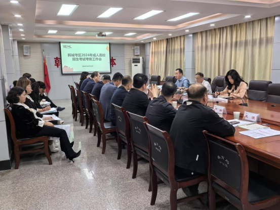 10月15日,渭南市韩城考区召开2024年成人高校招生考试考务工作会。韩城市教育体育局党组书记、局长郑武军出席会议并讲话。市教育体育局党组成员及相关科室负责人,各考点主考、副主考、考务组长及考试中心全体工作人员参加。