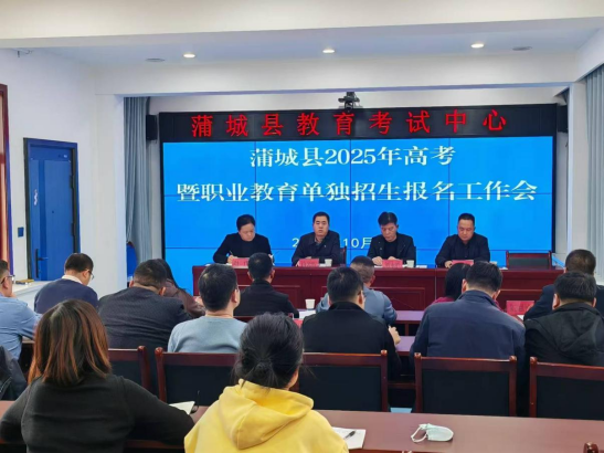 2025年全国普通高校招生考试报名工作将于11月1日—7日进行。10月28日下午,渭南市蒲城县教育考试中心组织召开了2025年高考招生报名工作会议。县教体局副局长由光辉出席会议。会上,组织学习了蒲城县高考报名相关文件,安排了贫困专项计划考生资格审查工作,明确了学籍审查办法、报名注意事项、时间安排以及后续各项工作。