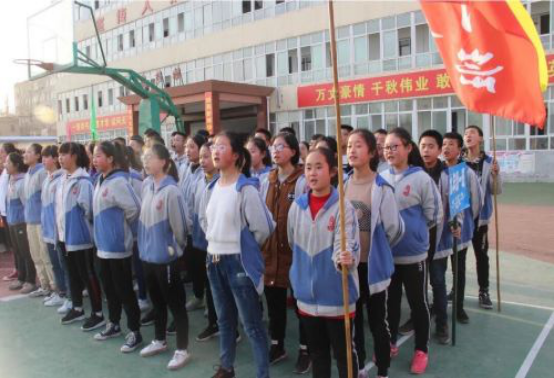 中考前誓师大会上,孩子们唱起了庄严地国歌