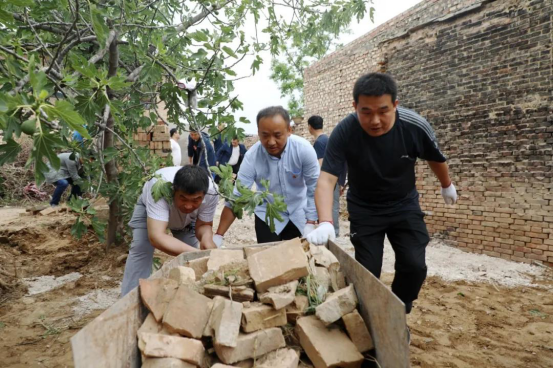 随后,志愿者和驻村工作队成员分成两组,分别进入仓东村两户老弱病残、无劳动力的建档立卡贫困户家中,开展清理杂物、打扫庭院等室内外环境整治活动。整治活动中,党员同志充分发挥不怕苦、不怕脏、不怕累的精神,积极投入,有的整理零散砖块,有的清扫院内垃圾,有的挪动废旧木料,有的拿起铁锹平整凸凹不平的路面……经过近三个小时的辛勤劳动,困难群众的庭院面貌焕然一新,院内物品规范摆放,昔日凌乱的小院变得干净、整洁。