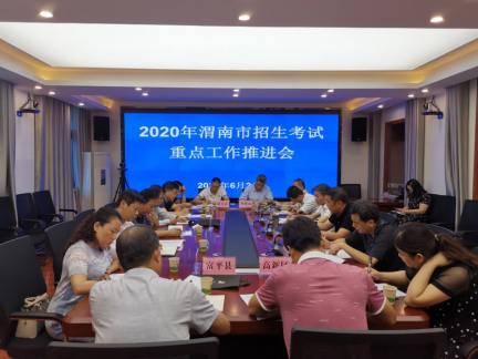 6月24上午,渭南市招生办召开2020年全市招生考试重点工作推进会。对全面贯彻落实中省市招生考试安全工作电视电话会议精神进行再部署、再安排、再强调。各县市区招办主任、市招办班子成员及各科室负责人参加会议,会议由党支部书记汤治江主持。