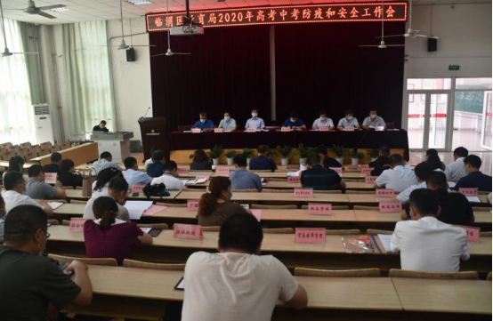 6月23日下午,临渭区教育局2020年高考中考防疫和安全工作会在实验初中召开。承担今年高考中考任务的6个考点主考,区卫健局派驻考点负责防疫管理的副主考,考区高中校长、全区初中校长、区招办部分干部、区教育局督查人员以及局领导班子成员等80余人参加会议。临渭区教育局党工委委员王玉新主持,区招生委员会主任、政府副区长李少博,区教育局局长邢唯远、副局长乔丰年,区卫生和健康局副局长梁荣辉出席会议。
