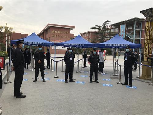 二是试卷保密,重于泰山。白水县公安局、保密局全程指导、监督试卷安全保密及考点安保工作,完善保密室、监控平台及考点24小时执勤制度,加强人有岗,岗有责的无缝对接制度,确保了试卷流转及考试各环节的保密和安全。