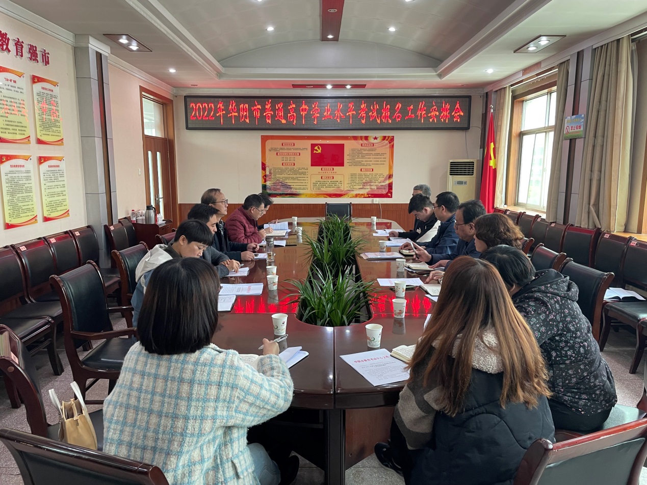 10月15日上午,华阴市教科局在四楼会议室召开2022年普通高中学业水平考试报名工作安排会议,安排部署2022年我市普通高中学业水平考试报名工作。教科局主管副局长,考试中心主任,各高中负责人等人员参加会议。