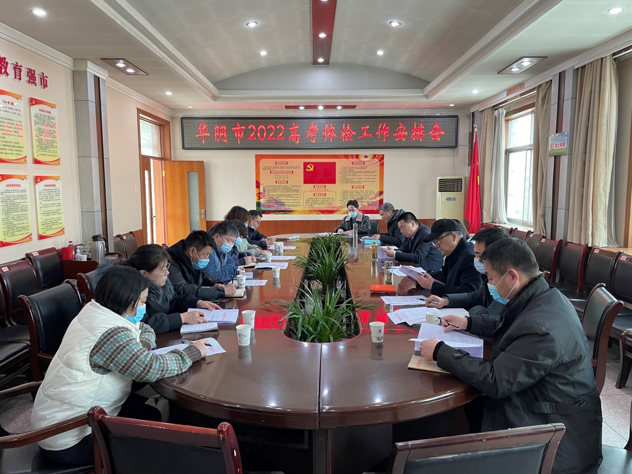 会议首先学习了《华阴市教育考试中心关于2022年高考体检工作的安排意见》,对华阴市2022年高考体检工作从组织机构、体检日程、体检人员安排、科室设置、有关要求等方面进行了详细安排。会议要求,各校要成立高考体检组织机构,安排足够人力组织考生有序体检,同时要严格落实省市有关防疫规定,确保考生和工作人员安全。