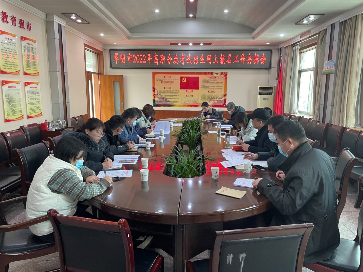 2月10日下午,华阴市在教科局四楼会议室召开2022年高考体检暨高职分类考试招生网上报名工作安排会,安排部署今年高考体检和高职分类考试报名工作。华阴市教育科技局主管副局长,华阴市教育考试中心主任,岳庙中学、华山中学校长,职教中心主管领导等16人参加会议。