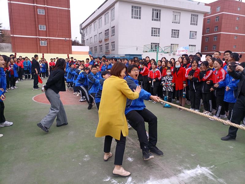 只听裁判一声哨响,比赛现场立刻沸腾起来。加油声、呐喊声此起彼伏。在班主任及任课老师、同学们激烈的加油声中,选手们卯足劲将绳子拉向己方,眼看要输了的一方,依然没有放弃,虽然手臂青筋暴露,手被勒的紫红紫红,他们依然坚持着。各班的拉拉队员们也毫不示弱,喊着“一二三加油、一二三加油......”为各班选手加油助威。赛场上激烈的角逐着,不时回荡着他们激昂的加油声、助威声,老师们也参与其中为学子们加油,整个赛场飞扬着他们青春的力量。整场比赛紧张、激烈、有序,充分展现了白水学子们昂扬的斗志、团结协作的精神面貌。