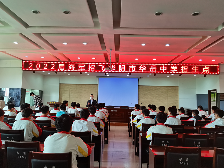 4月28日,海军青少年航校招飞宣讲组深入华阴市城关初中、华岳初中,进行海军青少年航空学校招生宣传及初检工作。