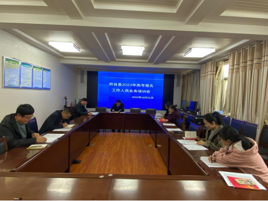 为做好2023年普通高考报名工作,10月21日上午,榆林市府谷县招生考试中心召开了2023年高考报名工作人员培训会,县招生考试中心全体人员和抽调工作人员参加了会议。
