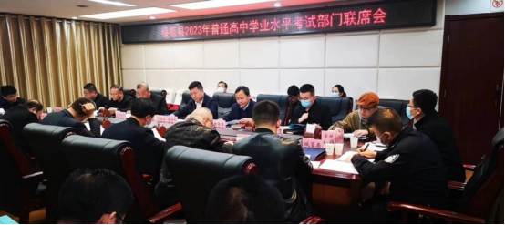 3月20日上午,榆林市绥德县在政府二楼会议室召开普通高中学业水平考试部门联席会,会议由县委常委,常务副县长马胜云主持,招委会成员单位负责人、考点主考、副主考、考务组长参加会议。