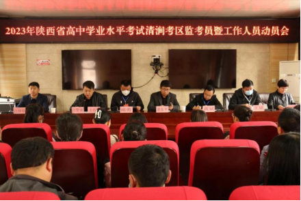 3月24日上午,榆林市清涧县考区在清涧县教育和体育局大会议室召开了2023年高中学业水平考试监考员暨工作人员动员会,参加会议的有省督查领导胡勇,市督查领导黄斌、县教体局副局长、考区主考惠东平,副主考白峰峰、王梁,考试中心副主任师娅娜,及所有监考老师和相关工作人员,会议由考试中心主任白贺锋主持。