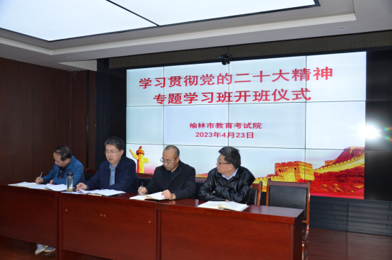4月23日上午,榆林市教育考试院学习贯彻党的二十大精神专题学习班在三楼指挥中心正式开班。市教育考试院党支部书记、院长王海兵主持开班仪式并作动员讲话,市教育考试院全体人员参加。