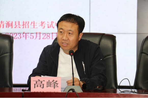 会议第一项招生考试中心工会主席高峰就考务工作进行培训,高主席首先介绍2023年清涧县高考基本情况,通报近年考务中存在问题,之后从监考员注意事项、考场布置、考试各环节时间要求、考试实施程序、作弊典型案例、违规防范处理几方面进行培训。