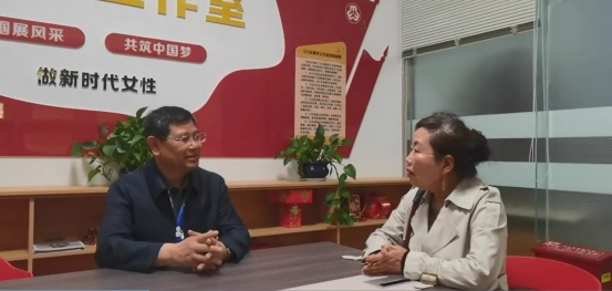 实验小学考点主考与曹红霞女士交谈现场
