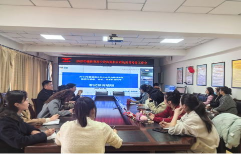 按照榆林市考试院安排,2025年2月27日下午2点,在定边县招生考试中心分场组织召开“2025年普通高中学业水平合格性考试体育与健康、音乐、美术科目机考考试视频培训会”。定边县招生考试中心主任、分管领导,定中、四中、实验中学、定边中学考点的主考、副主考、考务员、系统管理员、主监考等参加会议。培训会对高中体音美理论机考监考端、考生端考试系统的操作与使用、考试组织与实施、异常情况处理程序等进行详细的解读,保证考试的科学性、公平性与高效性。与会人员都仔细聆听,认真记录。本次培训会的召开,确保定边县首次普通高中学业水平合格性考试体育与健康、音乐、美术科目理论机考工作能够圆满完成,有着重要的意义。