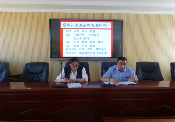 神木市“高考宣传月”活动启动以来,各监考学校紧紧围绕顾全大局讲政治、凝心聚力讲作为、守纪尽责讲规矩三个方面对全体监考老师作了系统培训,通过看录像和辅导讲解,对考务细则和需要注意的考务环节以及如何防范高科技作弊进行了详细解读。