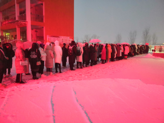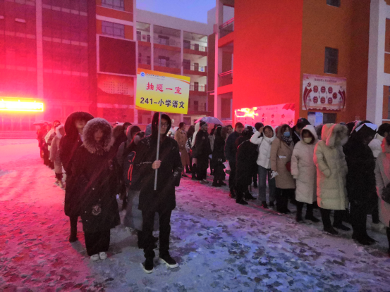 考生们冒着大雪和严寒早早等在了考点门口,按时进场后在引导员的引导下有序的排起了长队,引导员带着考生从专门为他们清扫开的通道来到抽题室。不管成绩如何,自觉守序的考生们已经具备了做一名人民教师的基本素养,为敬业的工作人员和可爱的考生点赞!