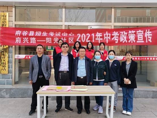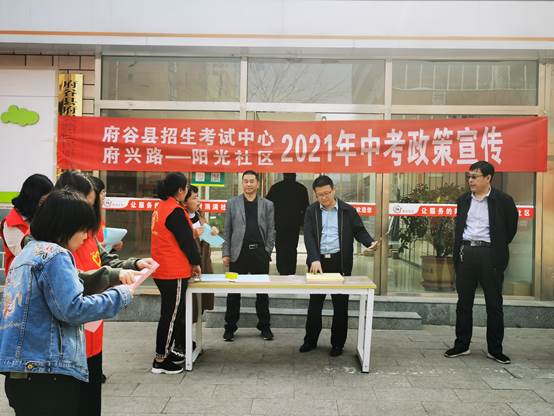 4月9日,榆林市府谷县招生考试中心和府兴路阳光社区就中考报名政策在府谷县新区进行了宣传。