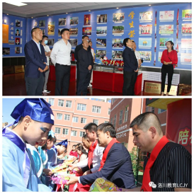 张晶一行实地参观校史馆,听取学校负责人的汇报,并参加了“六一”庆祝大会,少先队员为领导们戴上鲜艳的红领巾,张晶等为孩子们送上节日礼物和祝福,鼓励他们以阳光、积极的心态应对学习和生活。