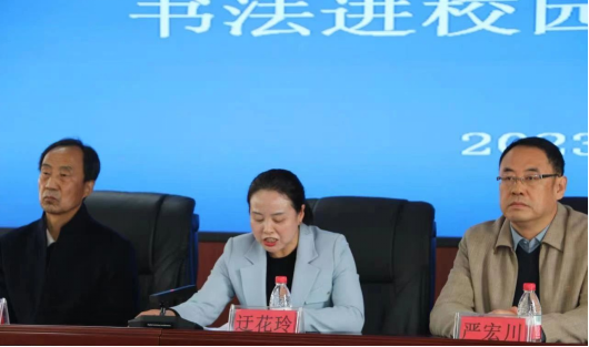 座谈会上,教科体局副局长迂花玲作了精彩致辞。中国书法家协会会员、陕西省书法家协会副秘书长、陕西省青年书法家协会副主席梁林波,中国书法家协会会员、中国人民大学书画院、高研班导师、深圳承明艺术馆馆长、洛川县书法家协会顾问郭盟,兰州大学书法研究所艺委会委员、中国书法家篆刻学院教师贾晓潼分别通过不同形式送来作品;延安市书法家协会副主席、秘书长王凌,中国书法家协会会员、江西省书法家协会篆书委员会主任杜思吾向大会发来贺电。丰园小学负责人就学校书法教育工作亮点作了详细汇报;各位书法大家向丰园小学赠送墨宝并对学校后期发展寄予厚望。