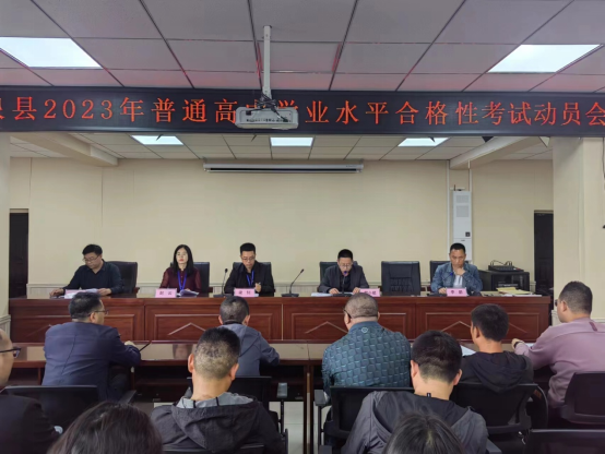 延安市甘泉县于2023年5月12日下午5:20在甘泉县高级中学会议室召开2023年陕西省普通高中学业水平合格性考试考前动员会。大会由县教科体局副局长郭小斌主持。