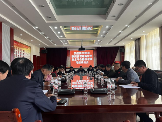 延安市吴起县2023年陕西省普通高中学业水平合格性考试考前动员会于5月12日下午在吴起县高级中学三楼会议室召开,会议由教科体局局长李彦斌同志主持,省级督察、西安体育学院武术学院教授毛浓选同志;市级督察、延安实验小学总务处主任任延博同志;吴起县招委会成员的单位分管领导等40余人参加会议,并签订了安全目标责任书。