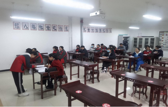 备考室培训完成后,8:20由引导员带领考生进入考试室,8:45左右第一场次考生顺利完成考试。共用上午三场次完成考试,考试全程零失误、零差错、零舞弊,实现了“平安考试”的组考工作目标。