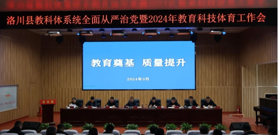 教科体局党委书记、局长赵振锋从党建质量持续提升、队伍建设全面加强、各类教育协调发展、教育质量稳步提高、保障体系坚强有力、科技创新成果丰硕、体育工作再上台阶七个方面对全县2023年教育科技体育工作进行全面总结,针对当前存在问题作了客观分析,全面部署了2024年重点工作。并坚持党建引领,助力教科体事业行稳致远;坚持优质均衡,扩大优质教育资源供给;坚持综合施策,提升教育教学质量;坚持五育并举,落实立德树人根本任务;坚持人才兴教,建设德才兼备四支队伍;坚持协调发展,推动各类教育高质量发展;坚持预防为主,守牢校园安全稳定底线;坚持任务驱动,实现科技体育工作追赶超越八方面工作进行强调。要求全县教科体系统要准确把握新时代新征程、教育科技体育事业高质量发展新形势新要求新任务,在县委、县政府的坚强领导下,锚定目标,不折不扣抓落实、雷厉风行抓落实、求真务实抓落实、敢做善为抓落实,振奋精神、凝心聚力,笃行实干、惟实励新,为谱写洛川教育科技体育高质量发展新篇章而努力奋斗。