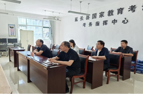 5月21日上午,延安市延长县教科体局副局长李旭,招生办主任张东彬及高考考务工作人员在县高级中学敏行楼二楼平台会议室参加了2024年全市普通高考考务工作培训视频会。