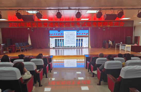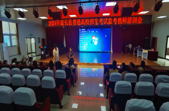为了确保2024年普通高校招生考试顺利进行,6月6日上午,延安市延长县招生办在县高级中学会议室举行了2024年普通高校招生考试监考教师培训会,县招生办工作人员和全体监考教师参加了本次会议,会议由招生办副主任郭兴海主持。