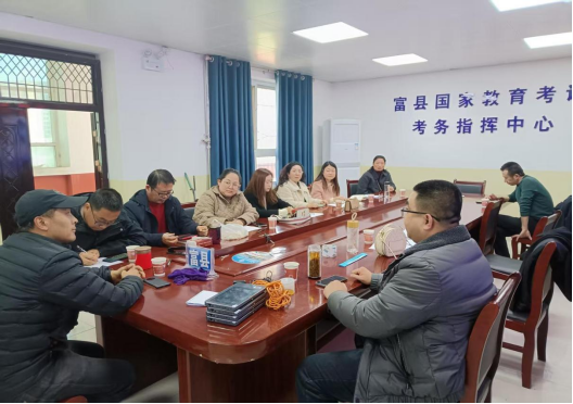 延安市富县招生办2月26日下午2点30分组织召开了2025年高考外语口试机考考务培训工作会。高级中学考点负责人、参与高考外语口试机考的考务人员和信息系统管理员及县招生办全体同志参加了会议。会议由县招生办主任任万军主持。